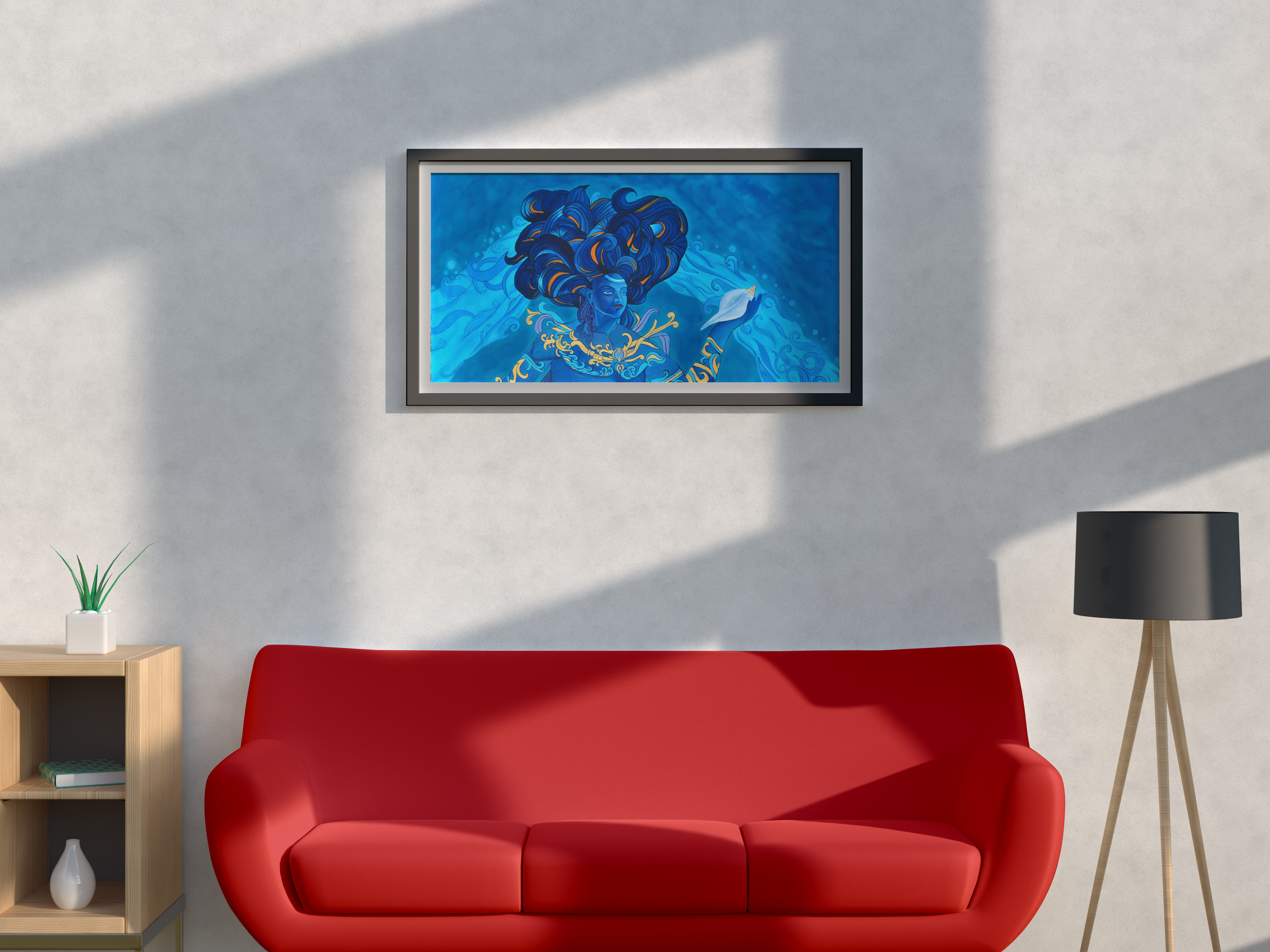 It is the depiction of story Samudra Manthan where the Devas and the Danavas took part in a tug of war contest to churn the elixir from the oceanbed to attain immortality. The process of churning the ocean also released a poison called "Halahala" that could wipe out the whole of creation. Lord Shiva consumed the poison himself to save humanity from calamity and destruction. In the process, Shiva's throat turned blue because of the pain and intensity of the poison.